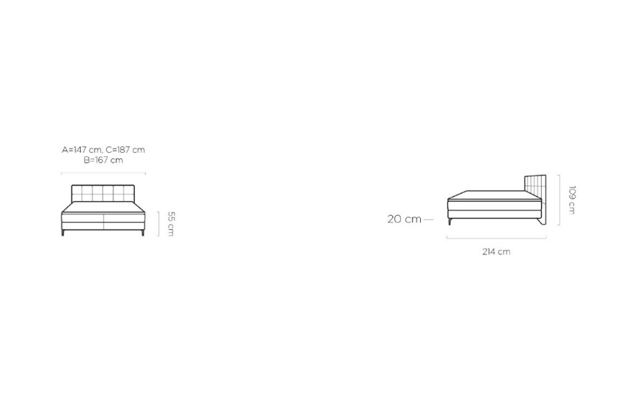 Zona pentru dormit: 140 X 200cm / 160 X 200cm / 180 X 200cm