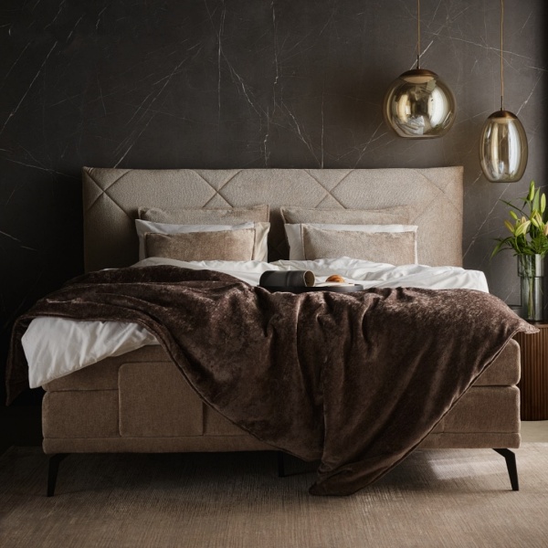 Pat boxspring BARI 160x200cm catifea mata crem