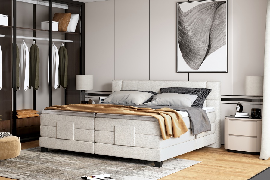 Pat Boxspring cu reglaj electric si topper integrat REY 140/ 160/ 180cm personalizabil