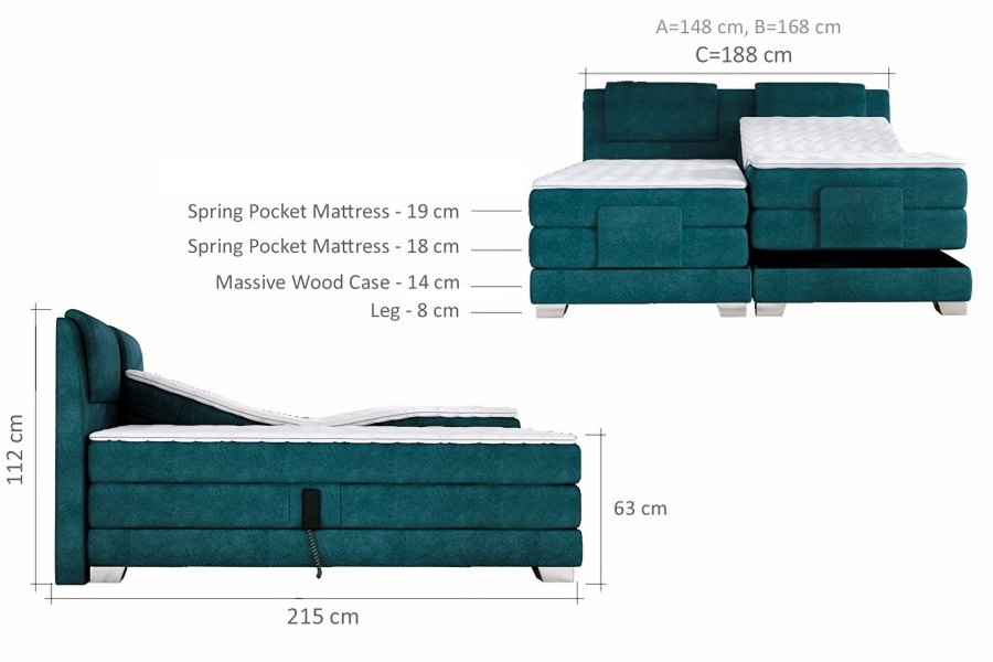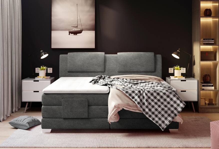 Pat Boxspring cu reglaj electric si topper WAVE (160x200cm) catifea