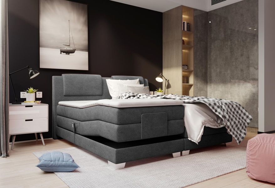 Pat Boxspring cu reglaj electric VINCE (180x200cm) material textil