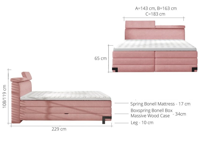 Pat Boxspring cu spatiu pentru depozitare KANO 140/ 160/ 180cm personalizabil