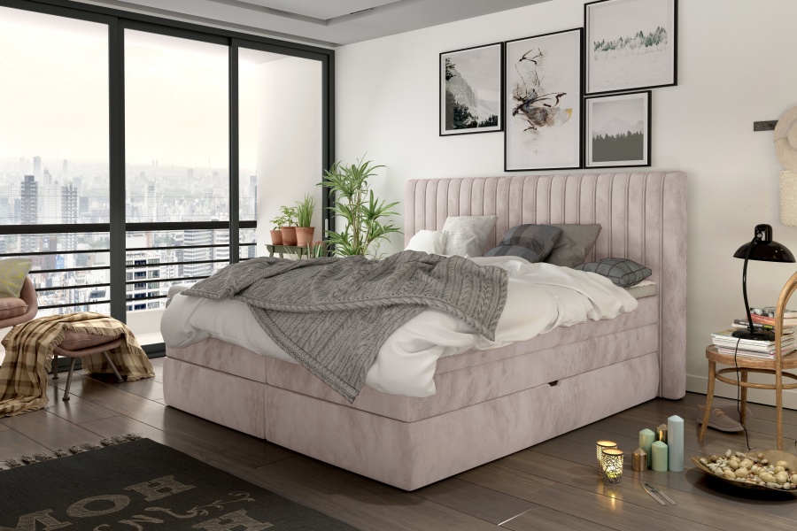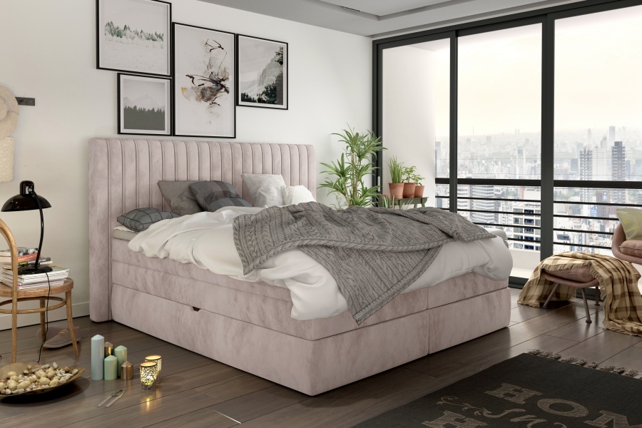 Pat Boxspring cu spatiu pentru depozitare MINOLA, 140/ 160/ 180cm personalizabil