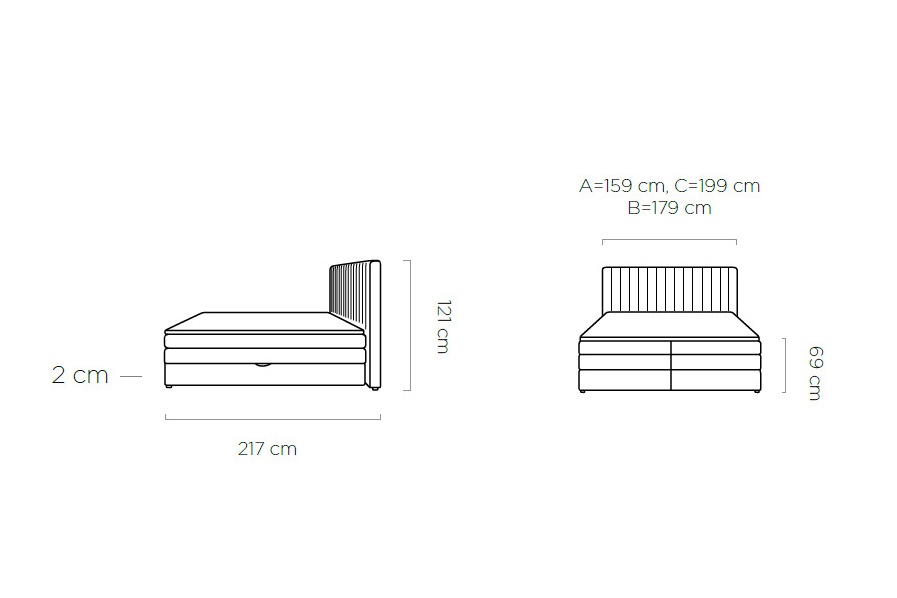 Latime totala: 159 / 179 / 199 cm