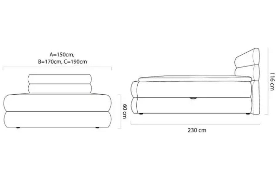 Zona pentru dormit: 140 X 200cm / 160 X 200cm / 180 X 200cm