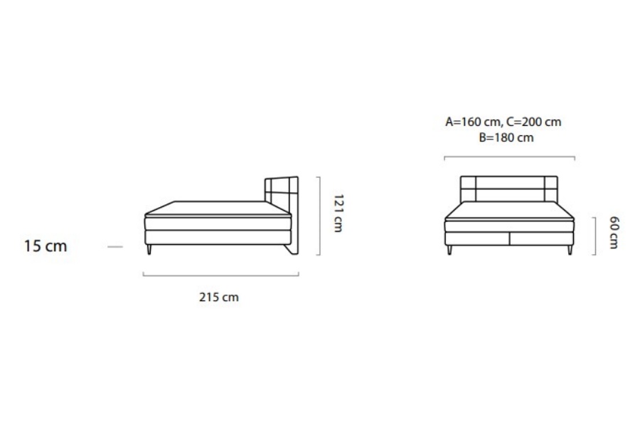 Zona pentru dormit: 140 X 200cm / 160 X 200cm / 180 X 200cm