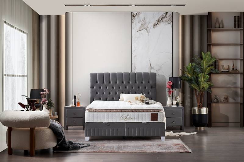 Pat tapitat cu saltea si spatiu pentru depozitare LEXUS (180x200cm) grey