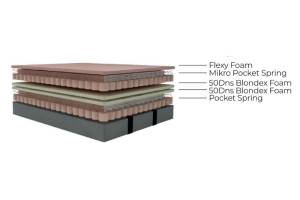 Saltea: Saltea cu arcuri tip (POCKET SPRING + MIKRO POCKET SPRING) + spuma (50DNS BONDEX FOAM + FLEXY FOAM)