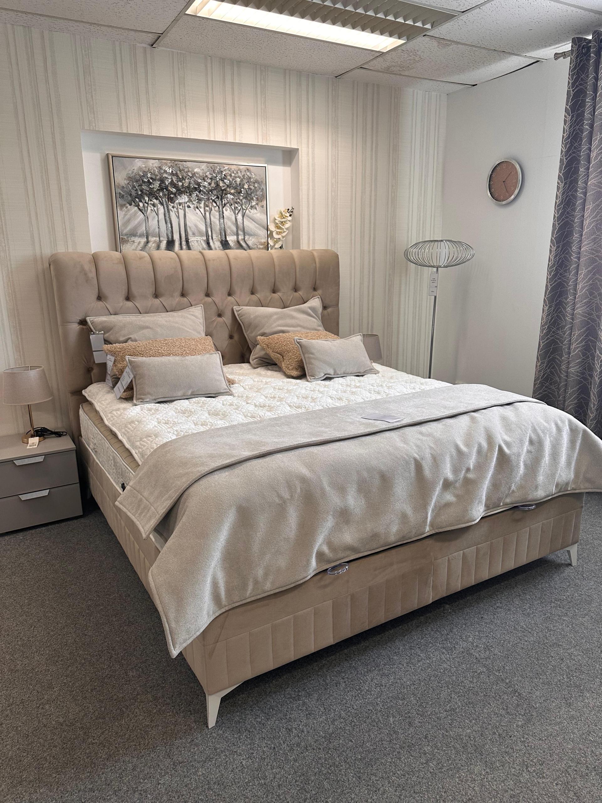 Pat tapitat cu saltea si spatiu pentru depozitare LEXUS (200x200cm) cream