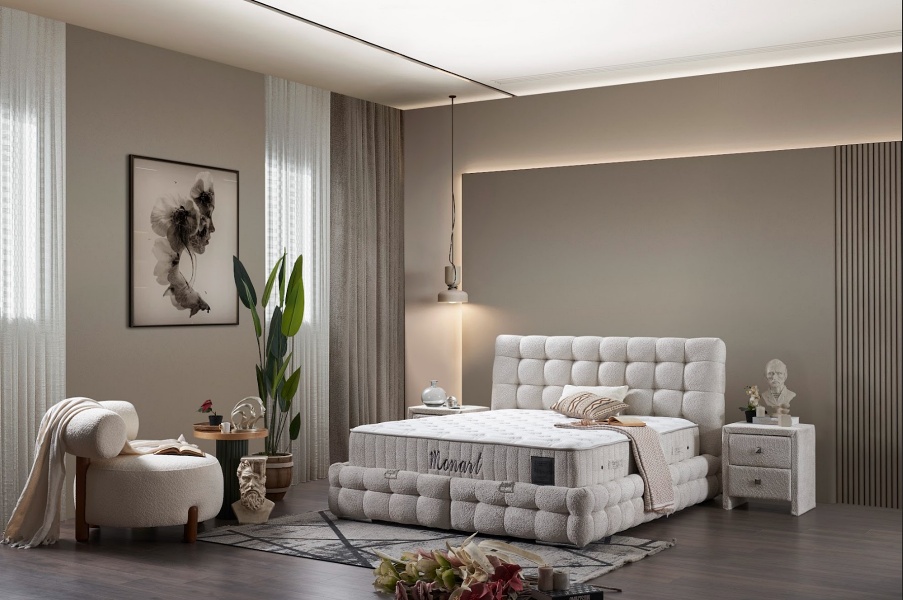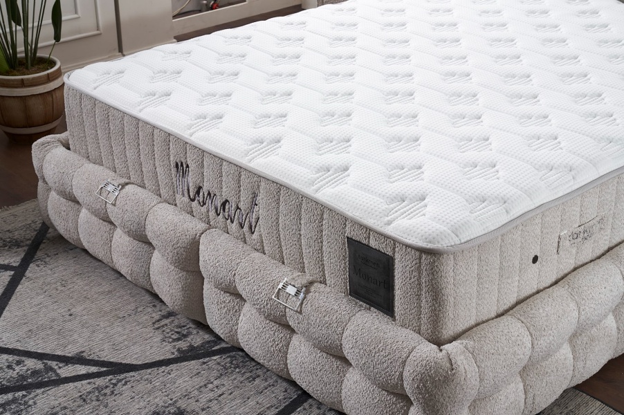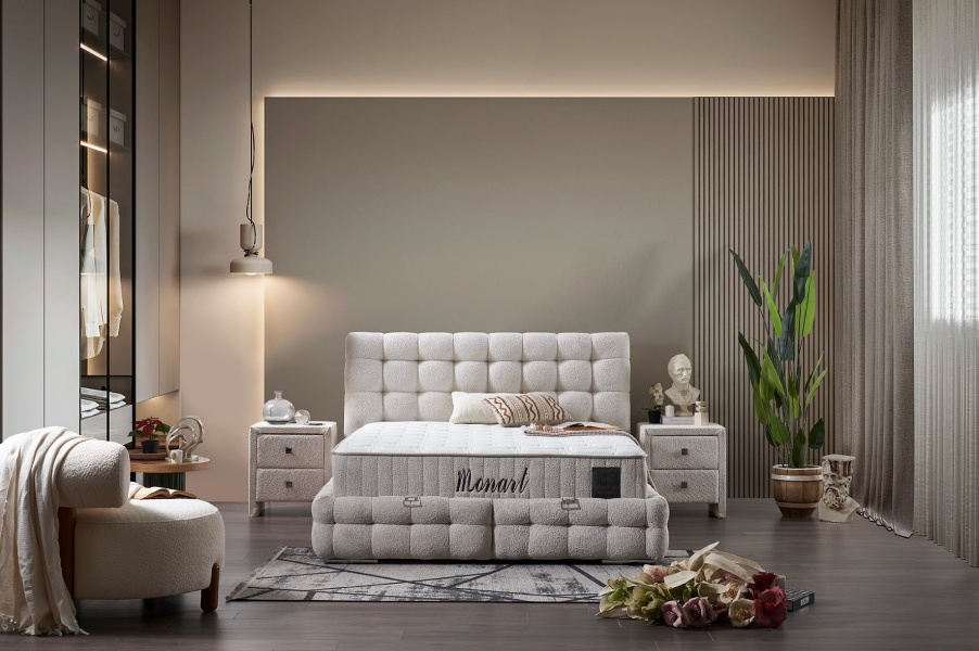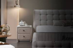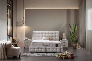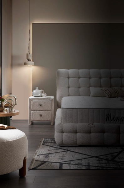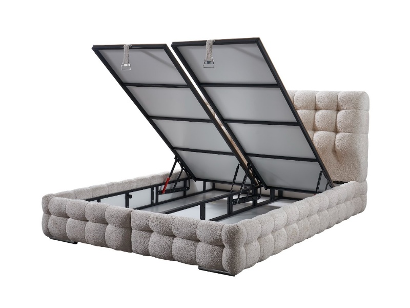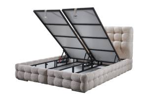 Pat tapitat cu saltea si spatiu pentru depozitare MONART (180x200cm) cream
