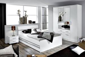 Pat cu somiera TARA WHITE 160 / 180cm alb mat/ nuc Pacific