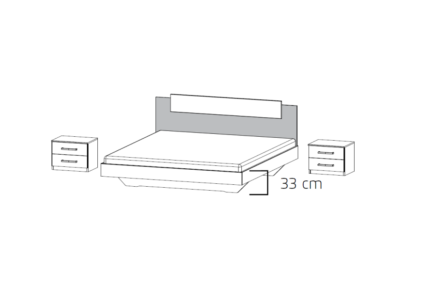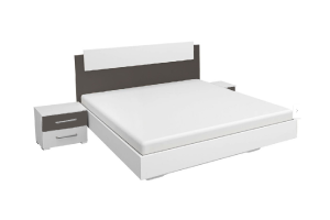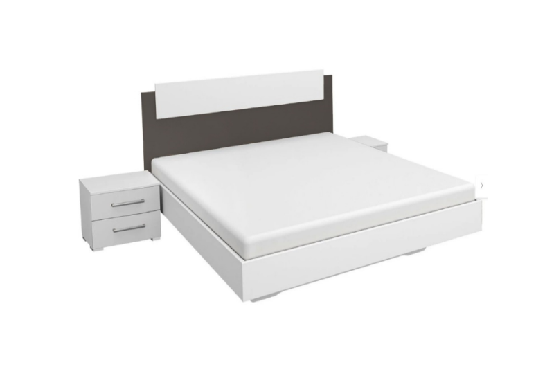 Cadru pat cu 2 noptiere BORBA (160x200cm) alb alpin/ gri metalic