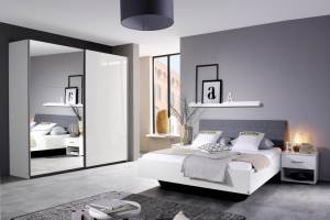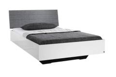 Cadru pat cu tablie tapitata HALLE (140x200cm) alb lucios + material textil gri
