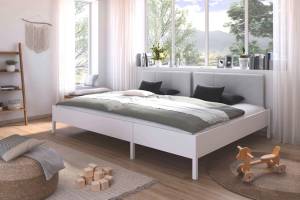 Cadru pat cu tablie tapitata MARE (270x200cm) alb alpin, material textil grey