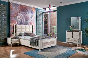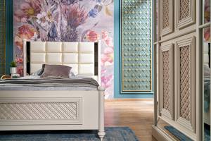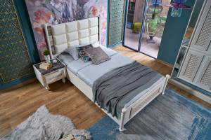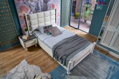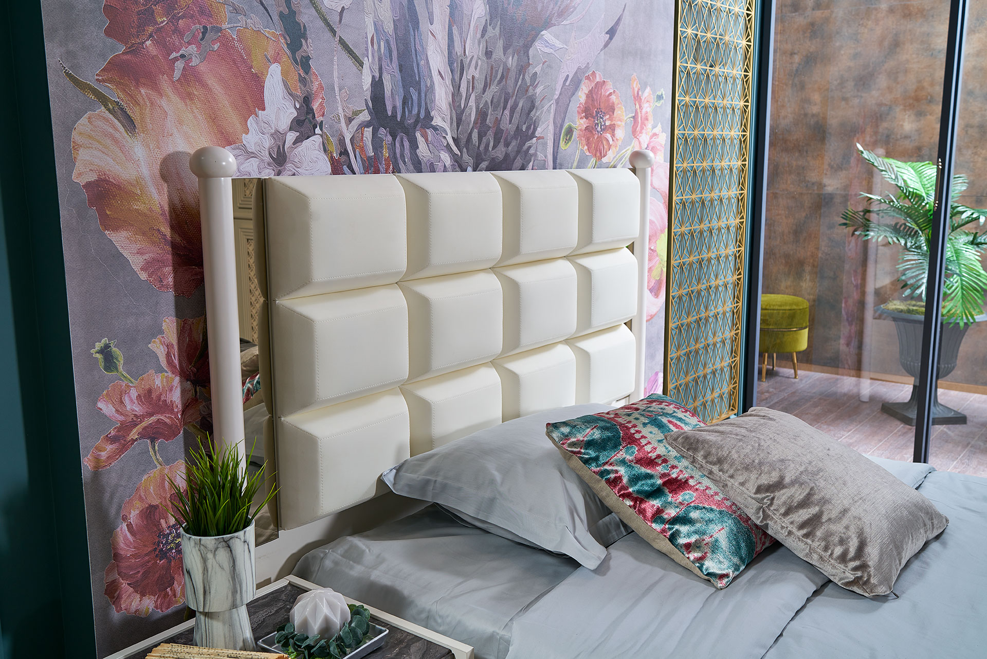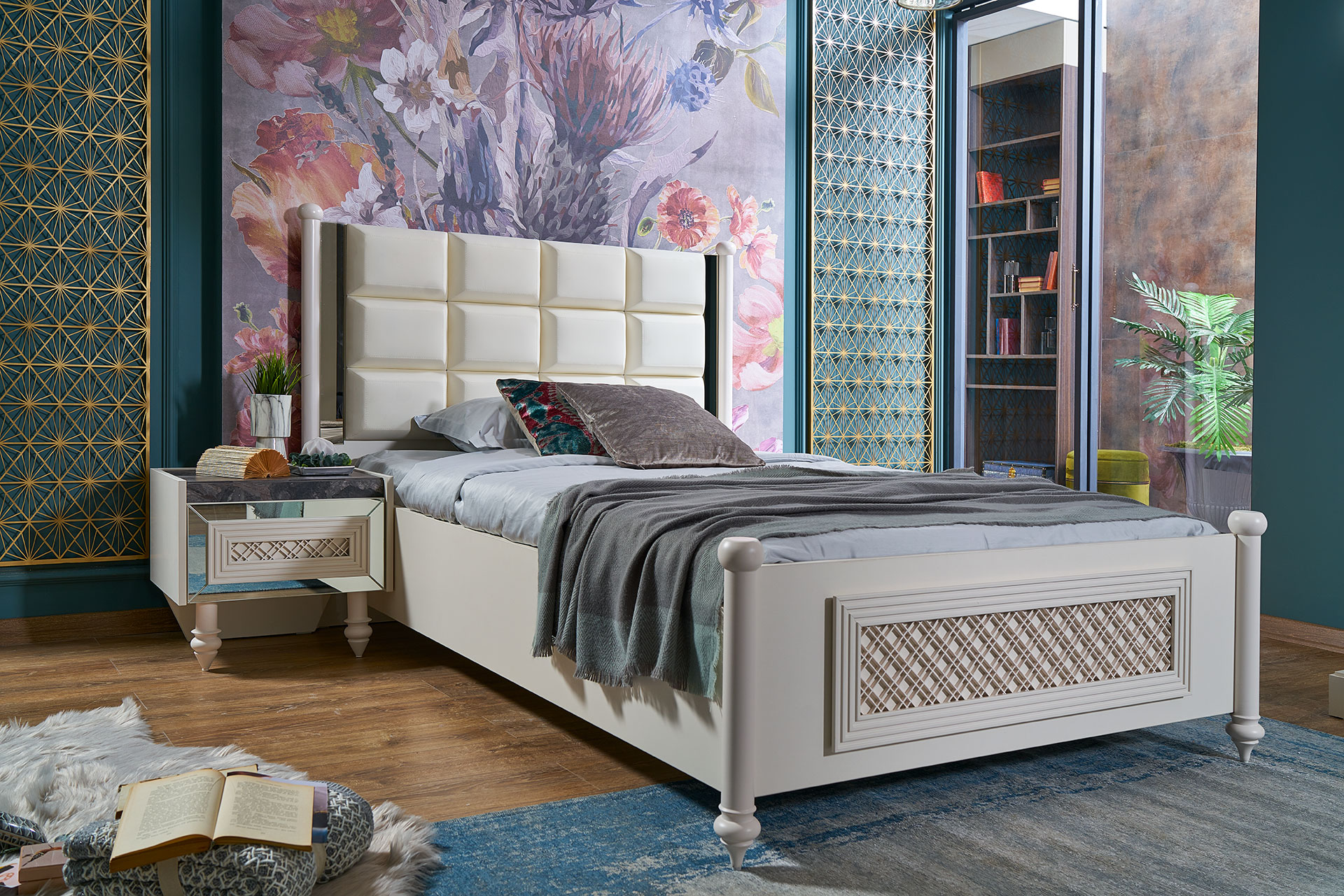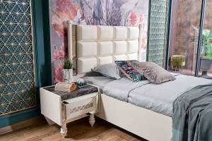 Pat cu noptiera LINA-TORINO (120x200cm) Premium cu design elegant, bej
