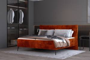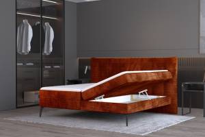 Pat tapitat cu saltea si spatiu pentru depozitare AURORA 160/ 180cm picioare negre