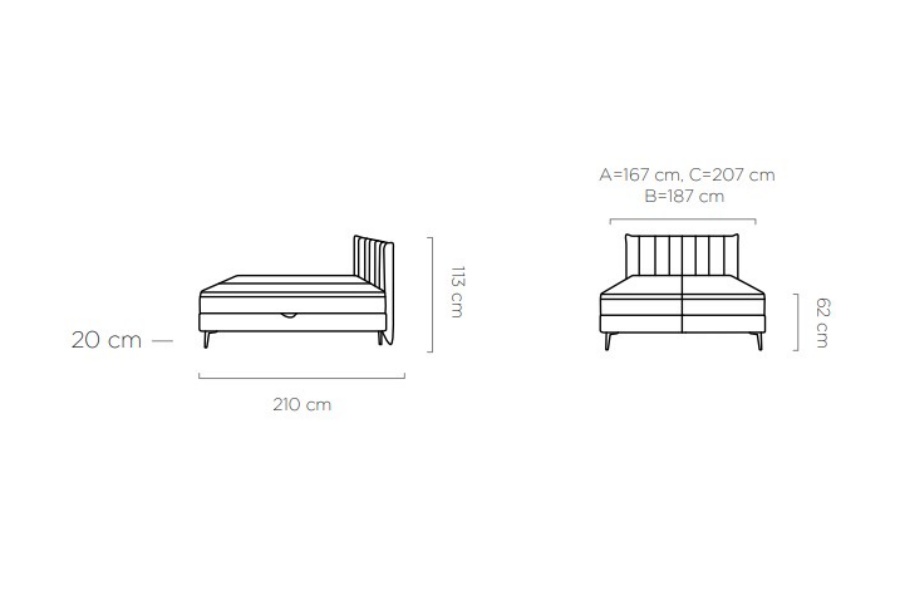 Zona pentru dormit: 140 X 200 cm / 160 X 200 cm / 180 X 200 cm