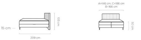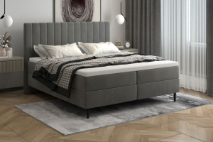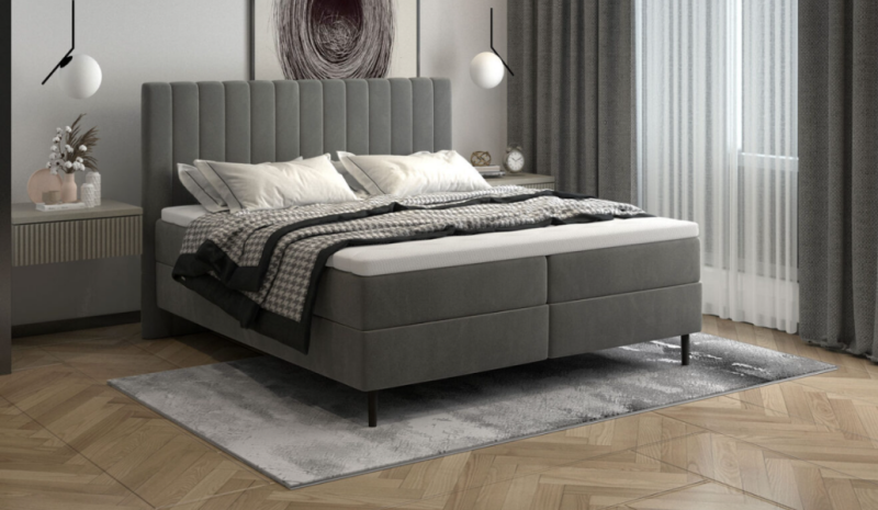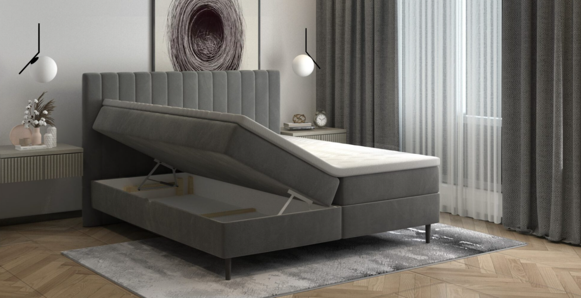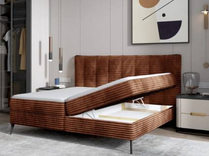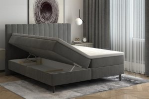 Pat tapitat cu saltea si spatiu pentru depozitare TANGO 140/ 160/ 180cm personalizabil, picioare negre