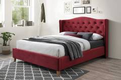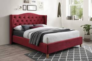Pat tapitat cu somiera ASPEN VELVET (160x200cm) catifea bordo, picioare nuanta lemnului