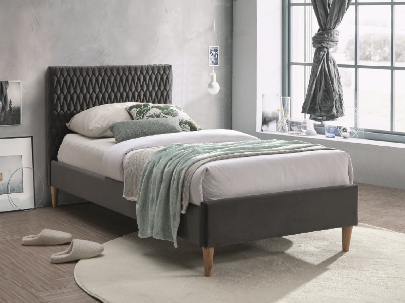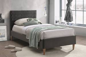 Pat tapitat cu somiera AZURRO VELVET (90x200cm) catifea grey, picioare nuanta lemnului