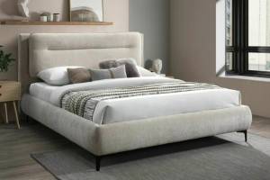 Pat tapitat cu somiera NIKOZJA RAVEN (160x200cm) material textil beige, picioare negre