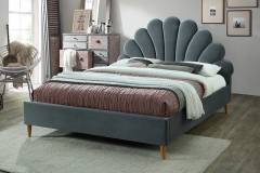 Pat tapitat cu somiera SANTANA VELVET (160x200cm) catifea grey, picioare nuanta lemnului