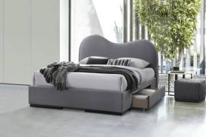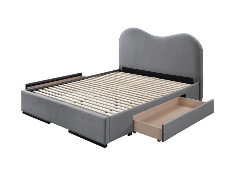 Pat tapitat cu somiera si sertare pentru depozitare AMBER (160x200cm) catifea grey