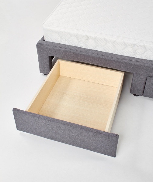 Patul are 4 sertare pentru depozitare.