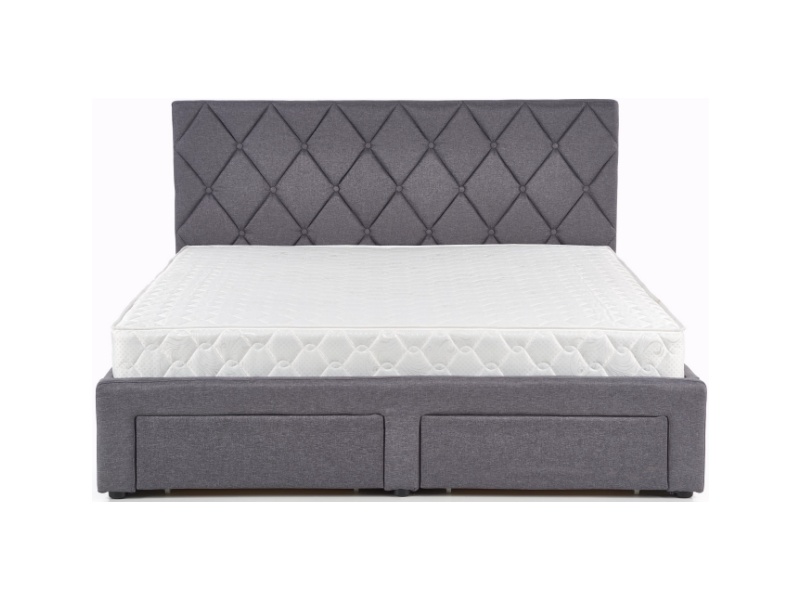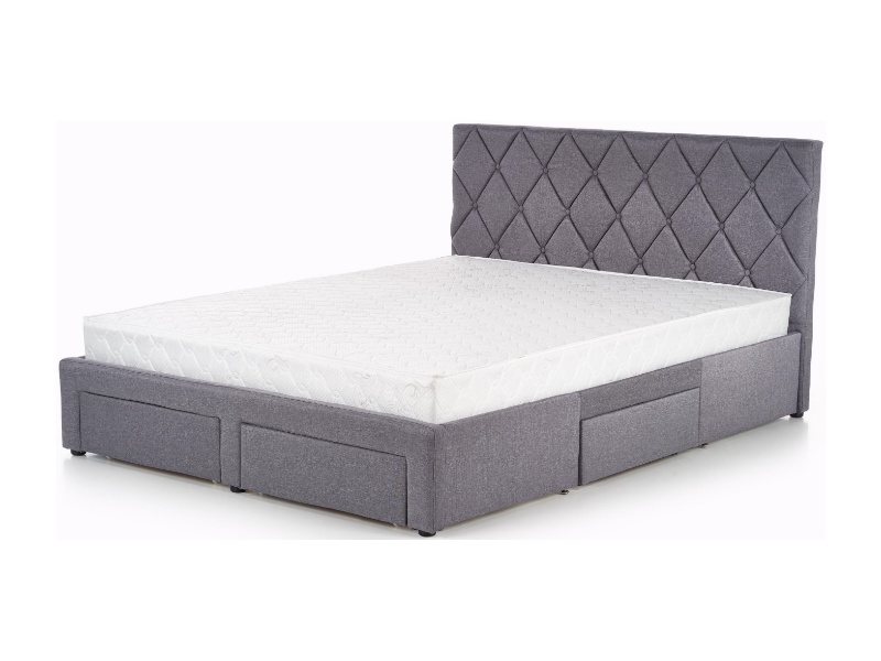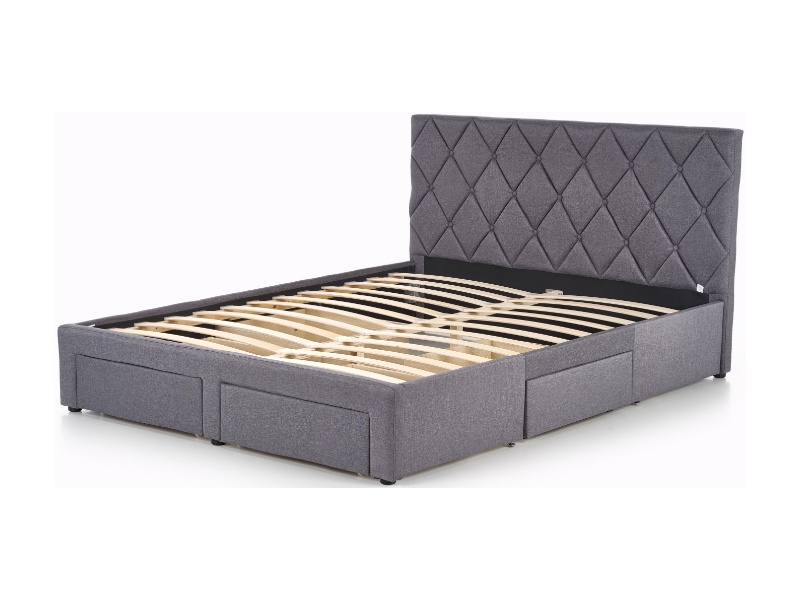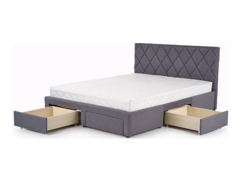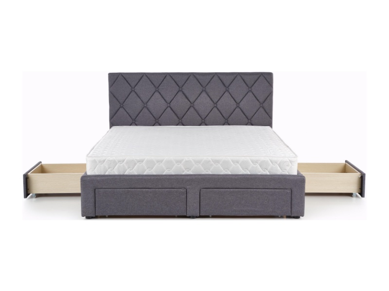 Pat tapitat cu somiera si sertare pentru depozitare BETINA (160x200cm) material textil grey