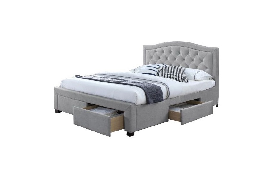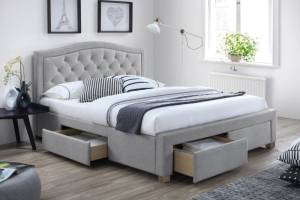 Pat tapitat cu somiera si sertare pentru depozitare ELECTRA 140/ 180cm material textil grey