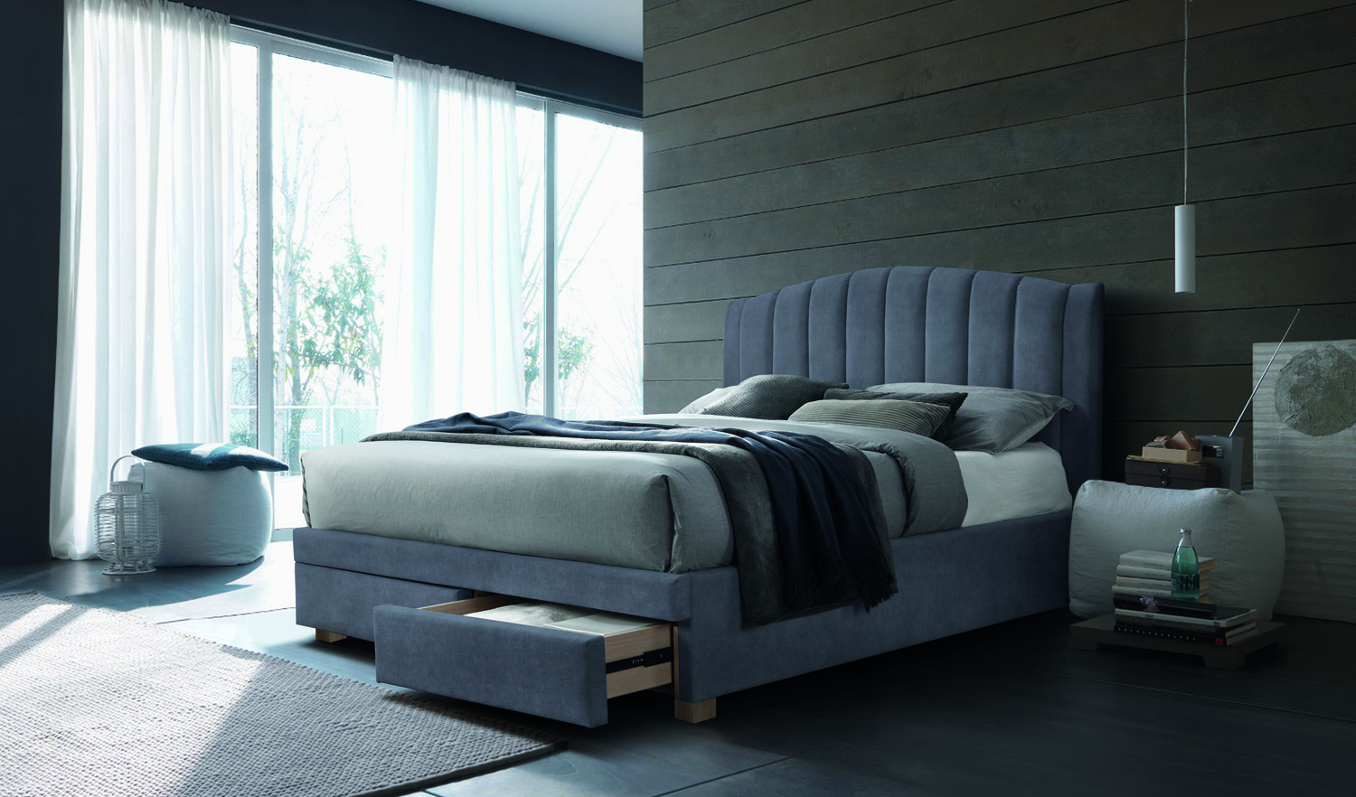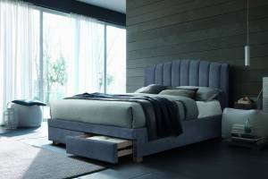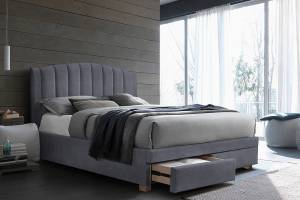 Pat tapitat cu somiera si sertare pentru depozitare EMOTION VELVET (160x200cm) catifea grey