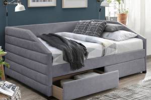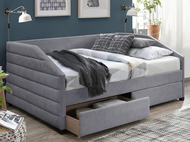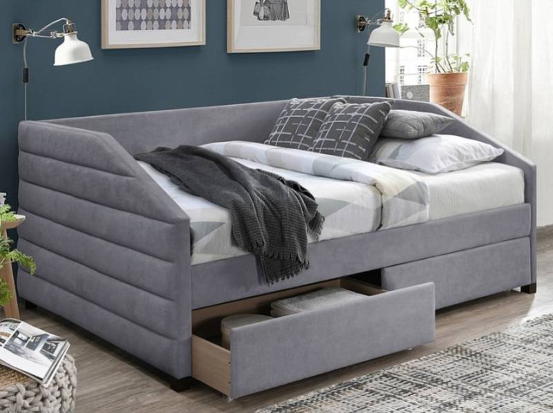 Pat tapitat cu somiera si sertare pentru depozitare NADIA VELVET (120x200cm) catifea grey