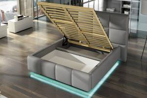 Pat tapitat cu somiera si spatiu pentru depozitare ASTI PROMO (180x200cm) ecopiele alba