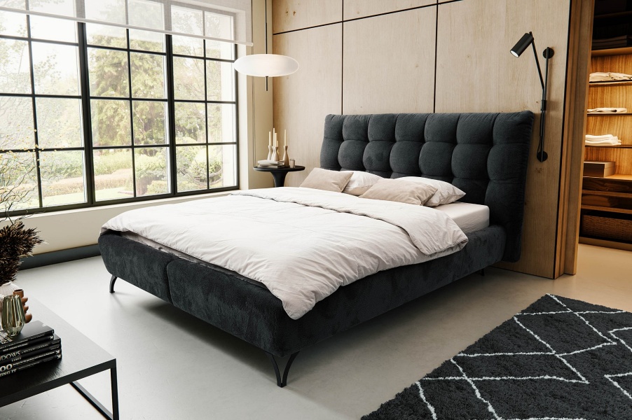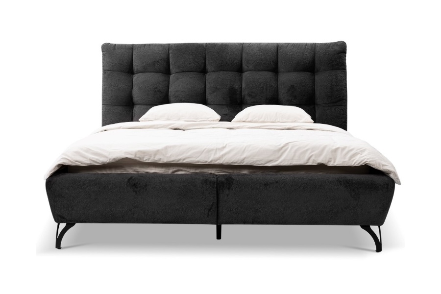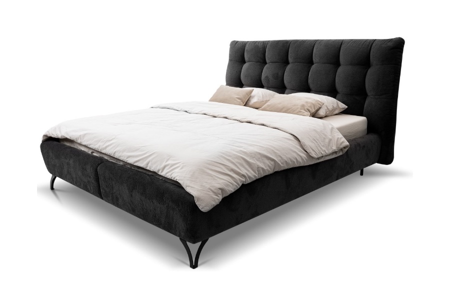 Pat tapitat cu somiera si spatiu pentru depozitare ERATO 140/ 160/ 180cm personalizabil, picioare negre