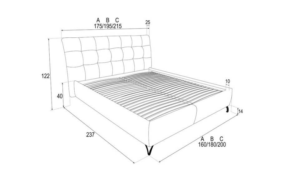 Zona pentru dormit: 140 X 200 cm / 160 X 200 cm / 180 X 200 cm