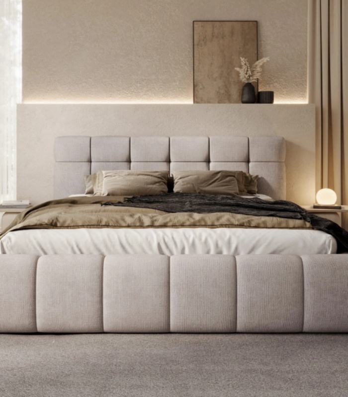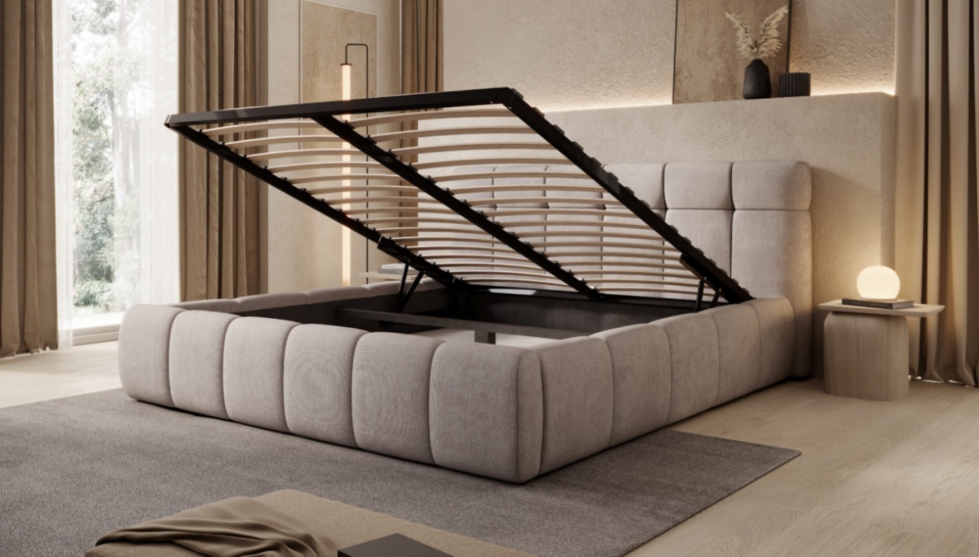 Pat tapitat cu somiera si spatiu pentru depozitare MELISSA 140/ 160/ 180cm personalizabil