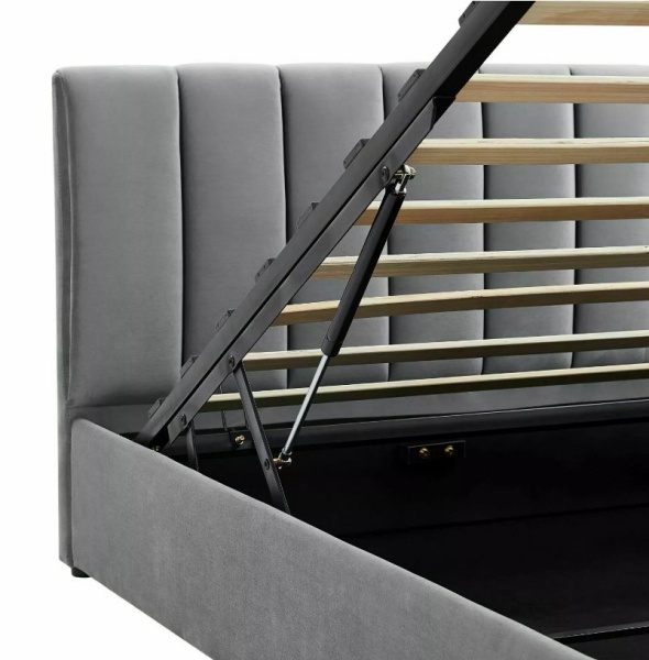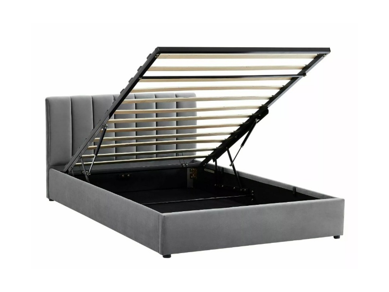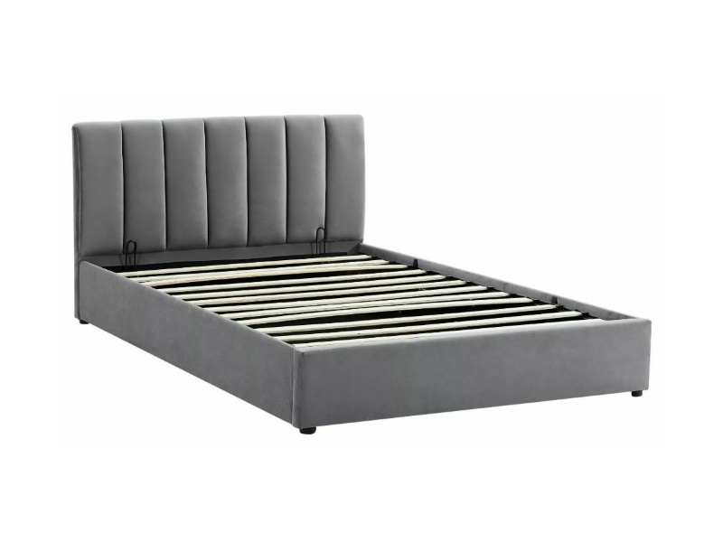 Pat tapitat cu somiera si spatiu pentru depozitare MONTREAL VELVET (120x200cm) catifea grey