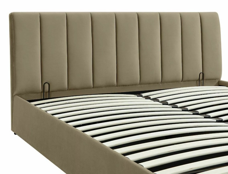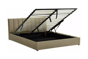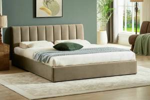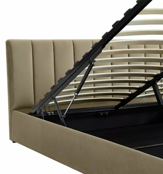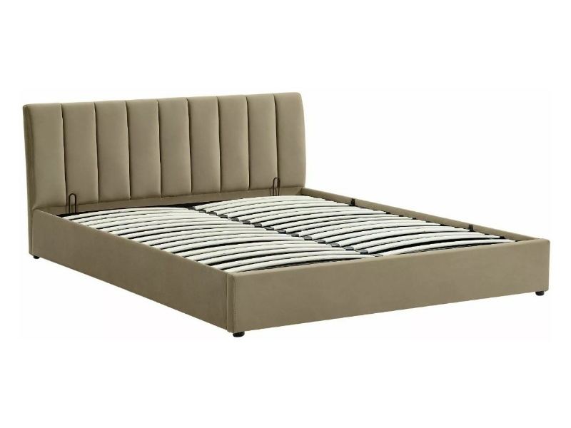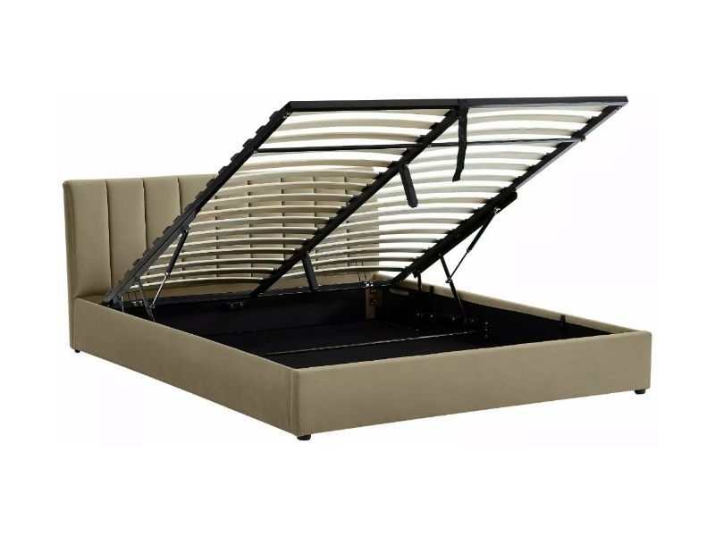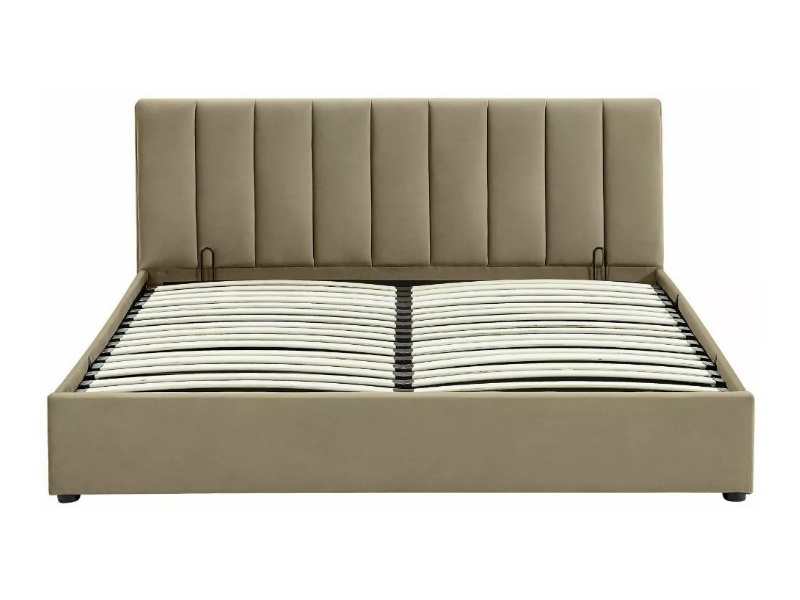 Pat tapitat cu somiera si spatiu pentru depozitare MONTREAL VELVET (160x200cm) catifea beige