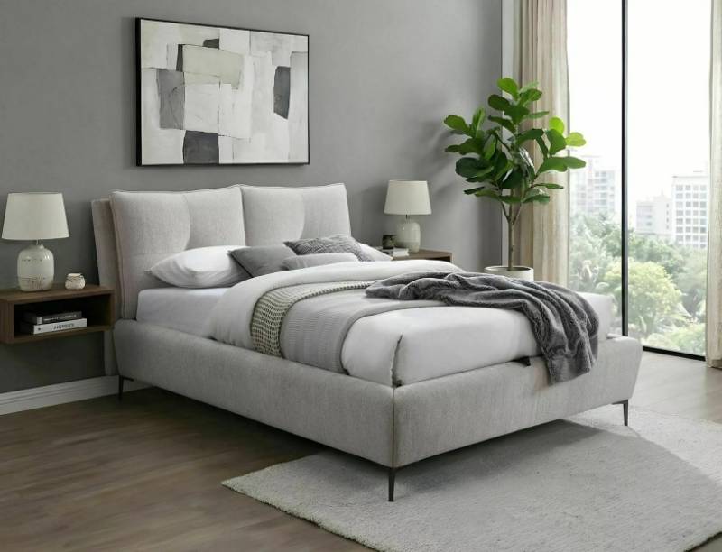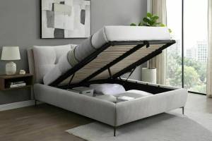 Pat tapitat cu somiera si spatiu pentru depozitare PASADENA RAVEN 160x200cm material textil beige