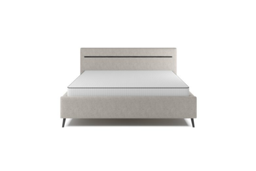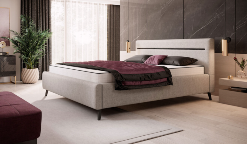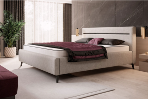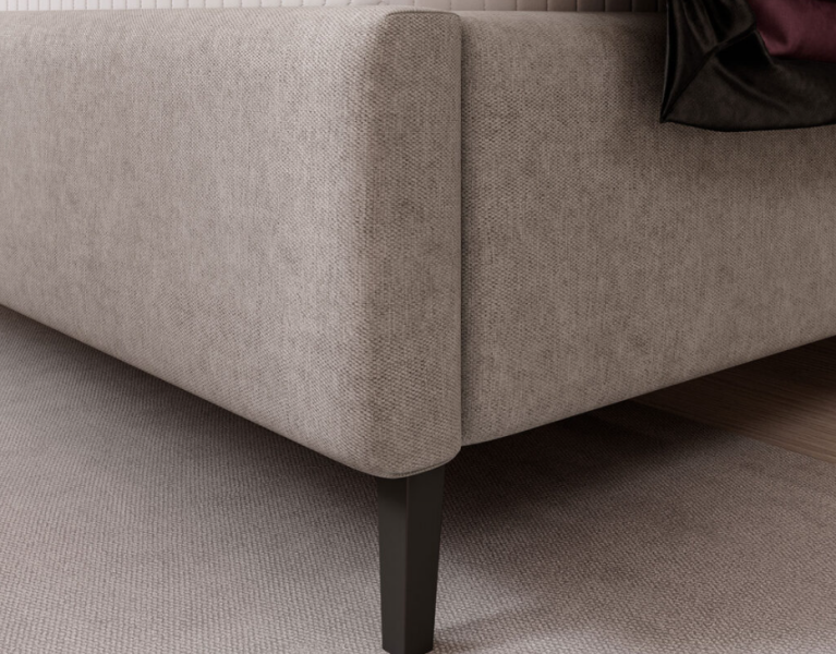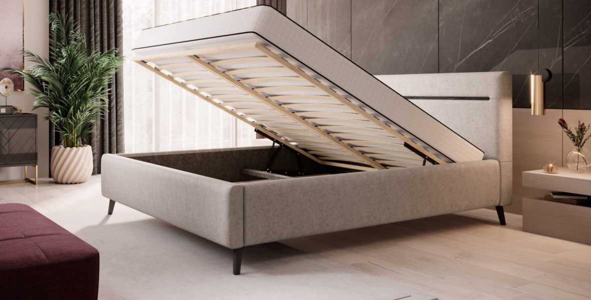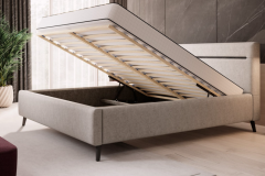 Pat tapitat cu somiera si spatiu pentru depozitare VUELTA (140x200cm) catifea cream, picioare negre