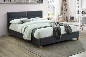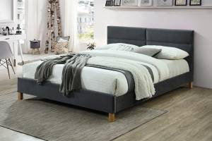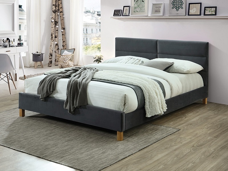 Pat tapitat cu somiera SIERRA VELVET (160x200cm) catifea grey, picioare nuanta lemnului