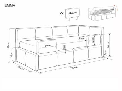 Zona pentru dormit: 140 X 200 cm / 160 X 200 cm / 180 X 200 cm