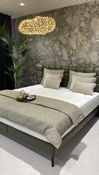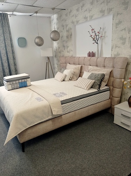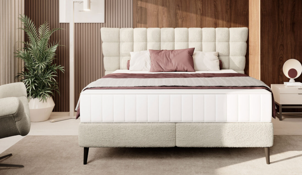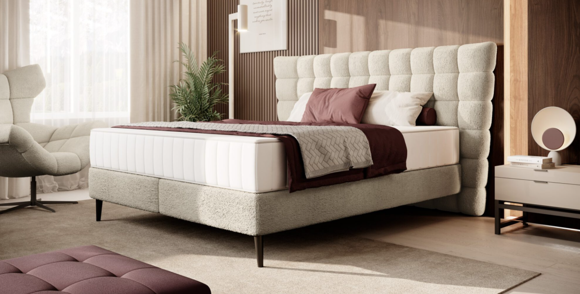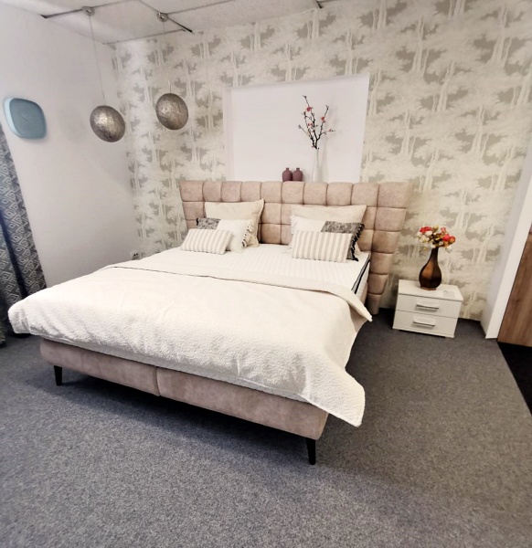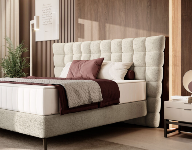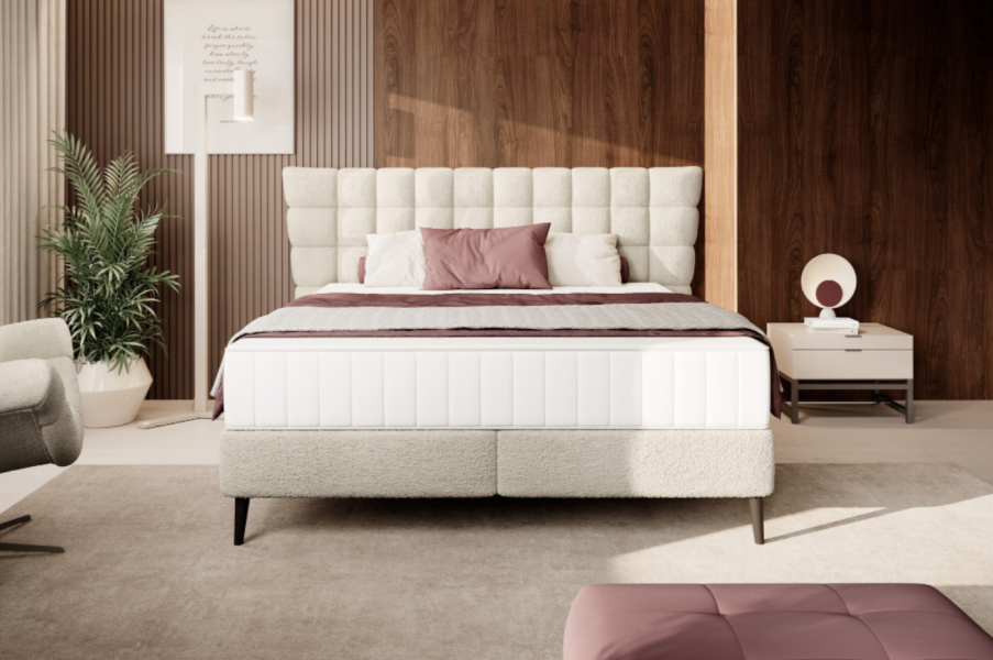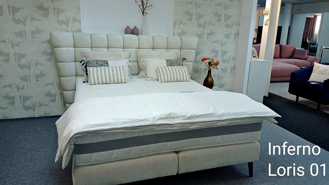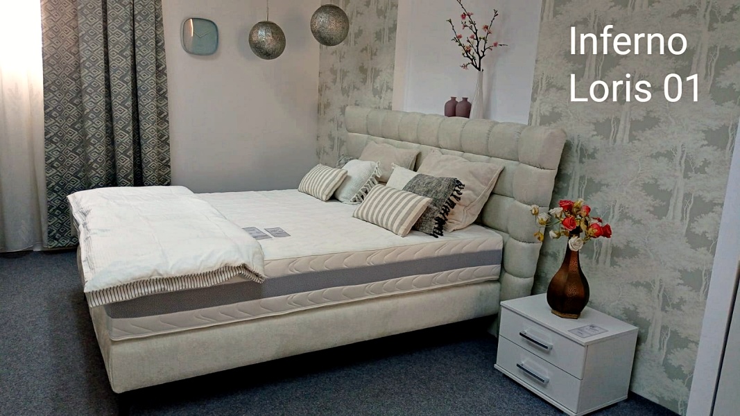 Pat tapitat cu somiera tip placa INFERNO 140/ 160/ 180cm elegant, personalizabil