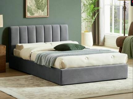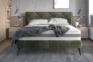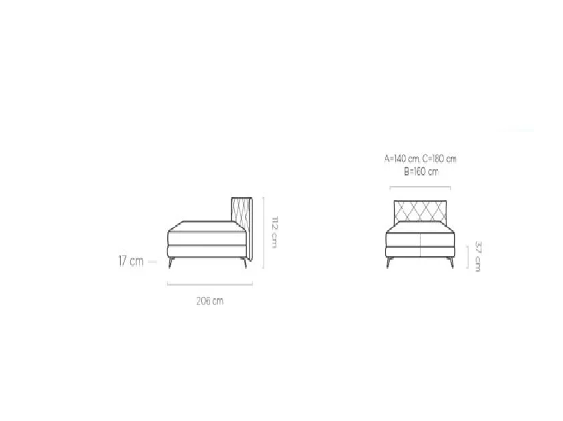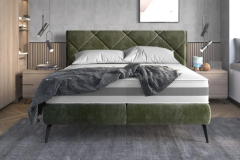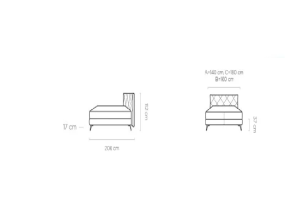Pat tapitat cu somiera tip placa SCARLET 160 / 180cm material textil, picioare negre
