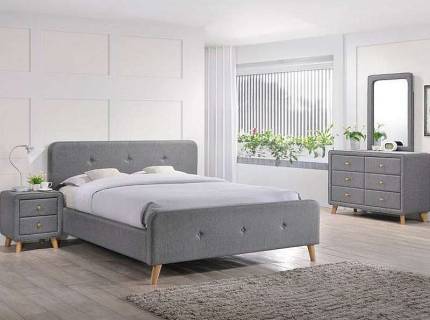 Pat tapitat cu somiera tip placa SCARLET 160 / 180cm material textil, picioare negre