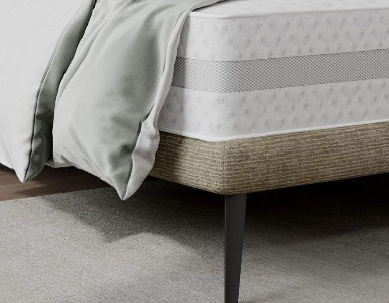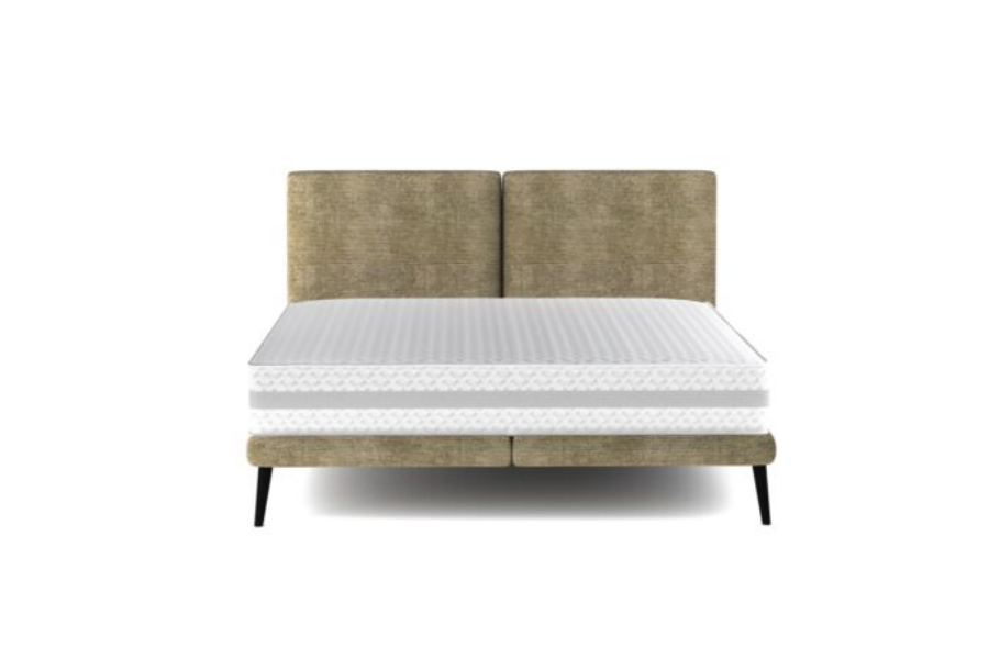 Pat tapitat cu somiera tip placa SELENE 140/ 160/ 180cm personalizabil, picioare negre