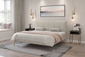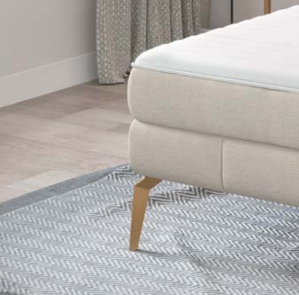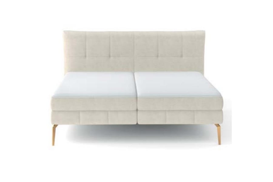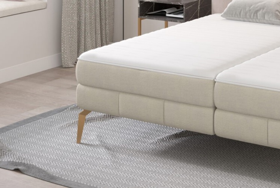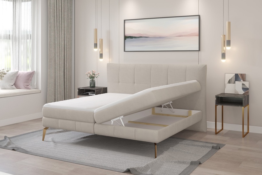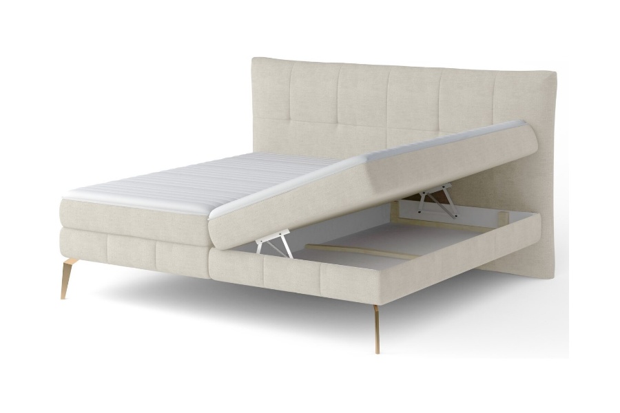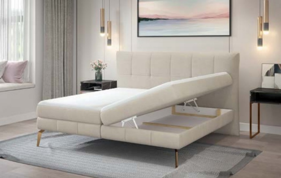 Pat tapitat cu spatiu pentru depozitare, saltea si topper incorporat JOLIN 160/ 180cm personalizabil, picioare aurii
