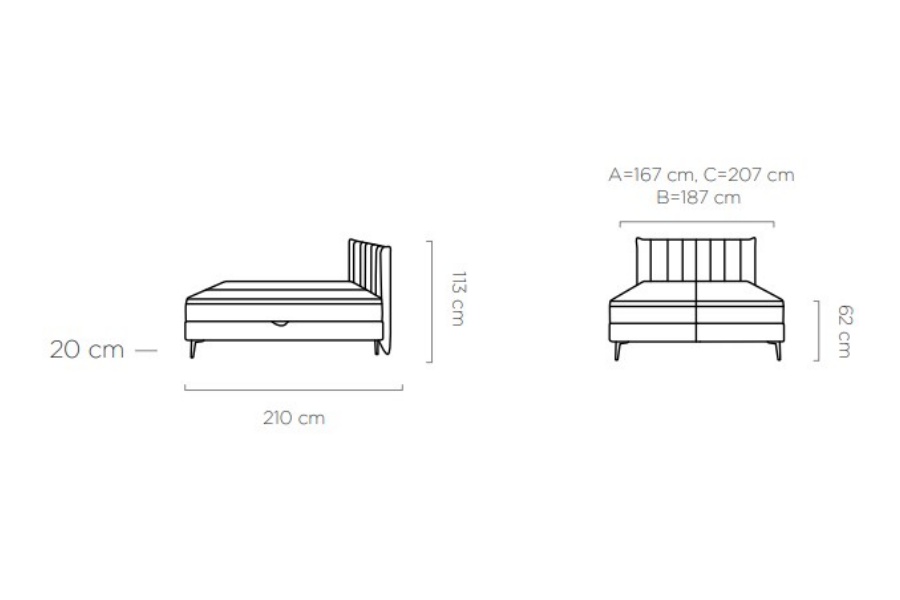 Latime totala:  187 / 207 cm