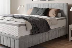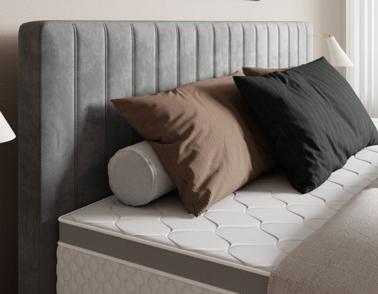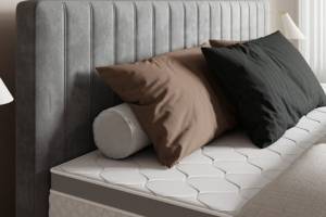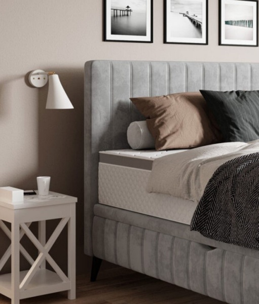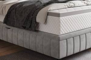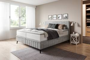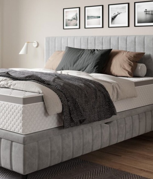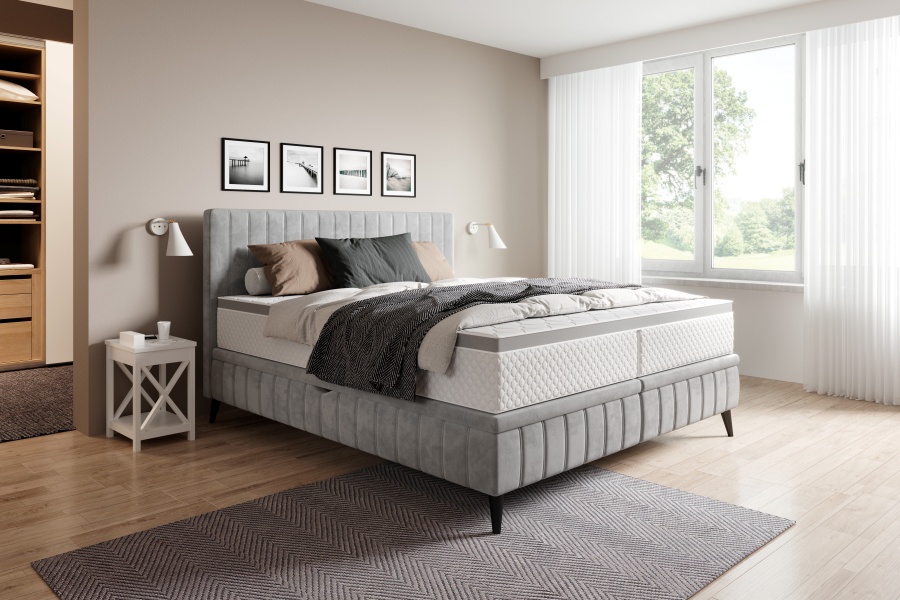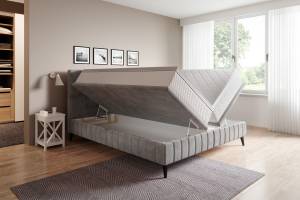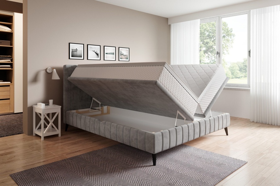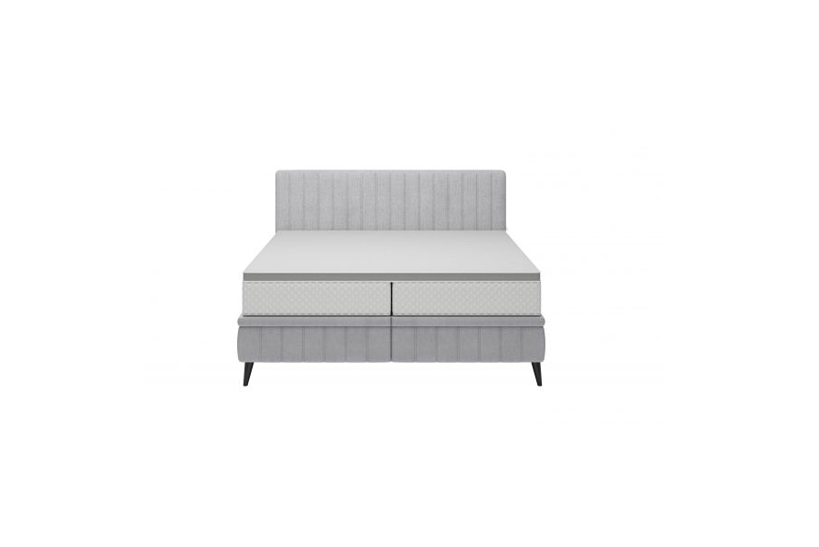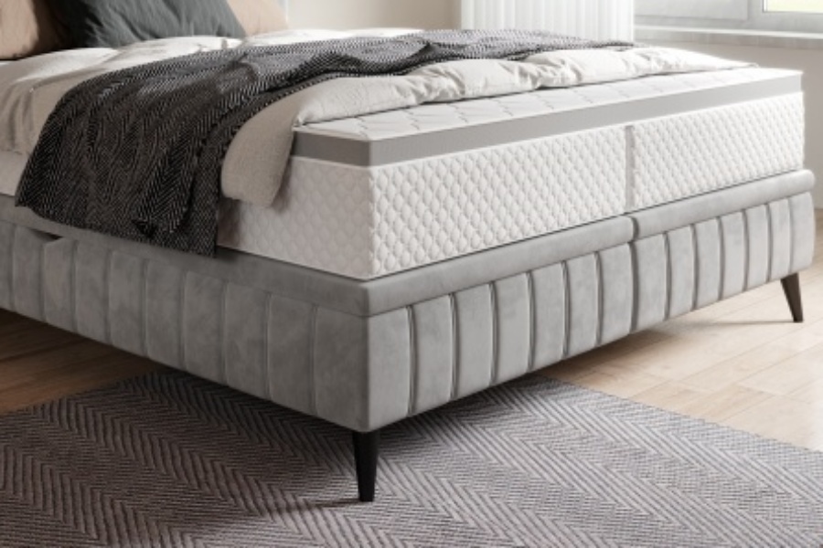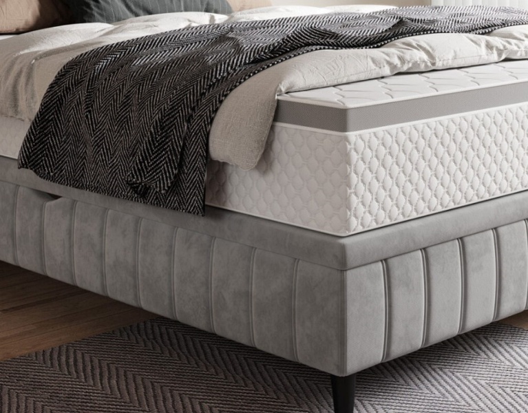 Pat tapitat cu somiera si saltea CALYPSO (140x200cm) catifea gri, picioare negre