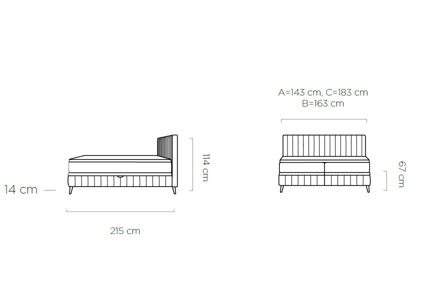 Zona pentru dormit: 140 X 200cm / 160 X 200cm / 180 X 200cm